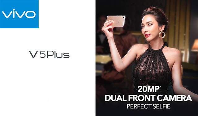 - Vivo V5 Plus มีกล้องความละเอียด 16MP ค่ารุรับแสง F2.0, phase detection autofocus, LED flash, บันทึกวีดีโอความละเอียด 4K, กล้องหน้าคู่ความละเอียด 20MP + 8MP, ค่ารูรับแสง F2.0 (เซ็นเซอร์กล้อง Sony IMX376) ซึ่งมาพร้อม ไฟแฟลช Selfie Softlight Flash