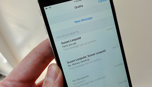 ปกติการเข้าถึงจดหมายฉบับร่างต้องไปที่กล่องจดหมาย แล้วเลือกฉบับร่าง ซึ่งมันดูวุ่นวายโดยเฉพาะที่คนใช้หลายบัญชี แต่มันมีทางลัดครับ ซึ่งจะนำคุณไปสู่จดหมายฉบับร่างทั้งหมดโดยไม่จำกัดบัญชี เพียงแค่เลือกพิมพ์จดหมายใหม่ (New Message) มันจะแสดงจดหมายที่เราเคยร่างหรือเขียนค้างเอาไว้ จากนั้นก็เลือกนำมาพิมพ์ต่อได้เลย