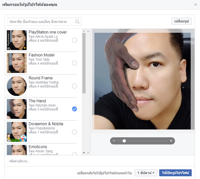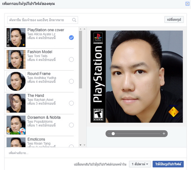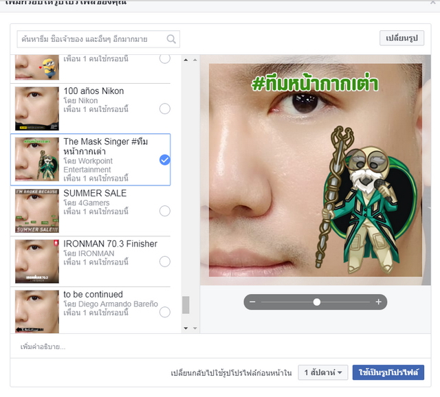 เมื่อเราได้กรอบรูปอย่างที่ต้องการแล้ว ให้คลิกไปที่ "ใช้เป็นรูปโปรไฟล์" เป็นขั้นตอนสุดท้าย เพียงเท่านี้เพื่อนๆ ก็ได้ภาพ Profile บน Facebook ที่มีกรอบเท่ๆ ไว้โชว์กันแล้ว บ่งบอกรสนิยมและความชอบกันสุดๆ ใครเลือกกรอบแบบไหน ก็อย่าลืมเอามาแชร์ให้ดูกันบ้างนะ