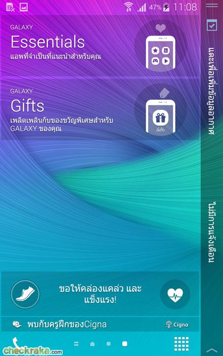 ในหน้านี้จะมีเมนูแนะนำแอปที่จำเป็น เมนูของขวัญพิเศษจาก Samsung และข้อมูลสถิติต่างๆ จาก S Health โชว์ให้ดู