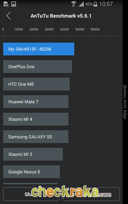 จากคะแนนของแอป AnTuTu Benchmark จะเห็นได้ว่า Note Edge นั้นเหนือกว่า One Plus One และ HTC One M8