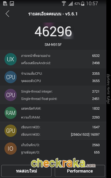 การทดสอบประสิทธิภาพของเครื่องด้วยแอป AnTuTu Benchmark (แอปทดสอบประสิทธิภาพชื่อดังที่ใช้ได้ทั้งบนแท็บเล็ต