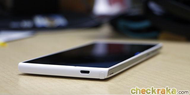 ด้านล่างนั้นมีช่องเสียบ microUSB และช่องดึงเสาอากาศตรงมุมเครื่อง