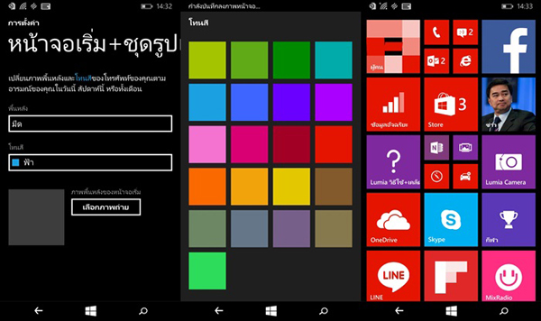 ในส่วนของรูปแบบหน้าจอหลักนั้นอาจเปลี่ยนไม่ได้มาก เปลี่ยนได้แค่สีพื้นหลังและเมนูต่างๆ แต่โทนสีนั้นสามารถเปลี่ยนได้ถึง 21 สีแล้วแต่เราต้องการเลยค่ะ โดยเข้าไปที่การตั้งค่าและเข้าไปที่ หน้าจอเริ่ม + ชุดรูปแบบ แล้วเลือกปรับเปลี่ยนได้ทันที