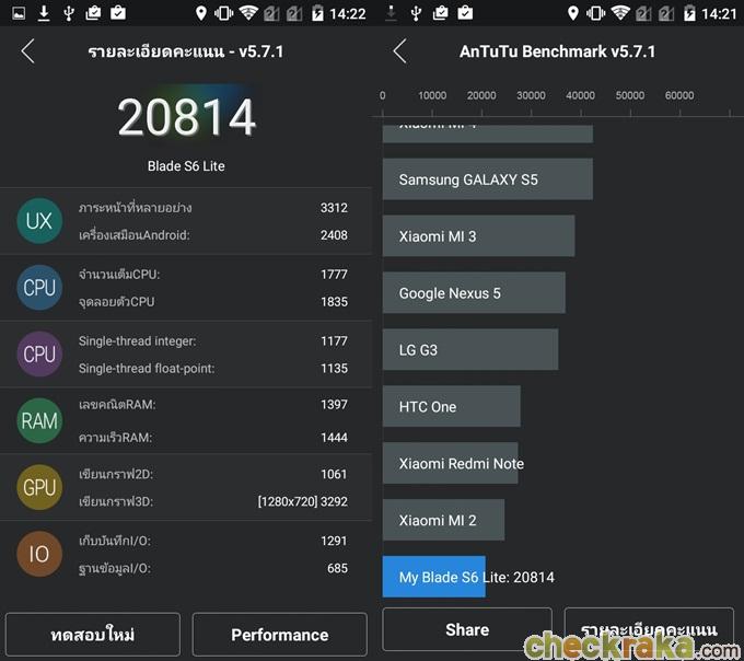 ผลการทดสอบประสิทธิภาพความเร็วด้วย Antutu Benchmark ได้ 20814 คะแนน