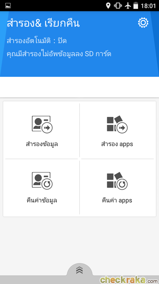 เราสามารถ backup ข้อมูลเก็บไว้ในเครื่องแบบออฟไลน์ได้ผ่านทางแอปพลิเคชั่นนี้ ข้อมูลที่จะ backup สามารถเลือกได้ทั้ง Contacts, SMS, ค่า Settings ของระบบ, Wallpaper และอื่นๆ นอกจากนั้นยัง backup แอปฯ และข้อมูลของแอปเก็บไว้ได้ด้วยการ backup โดยสามารถตั้งเวลาไว้ได้ตามต้องการ
