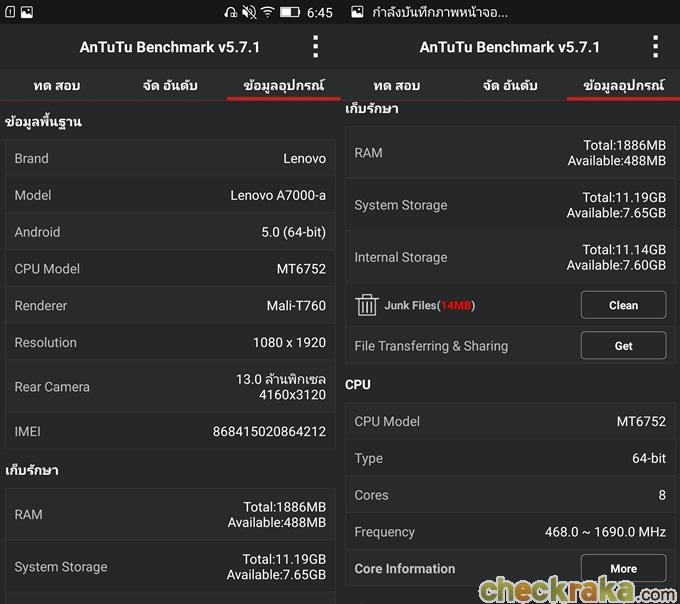 ข้อมูลตัวเครื่องและผลการทดสอบประสิทธิภาพความเร็วด้วย Antutu Benchmark ได้ 45782 คะแนน