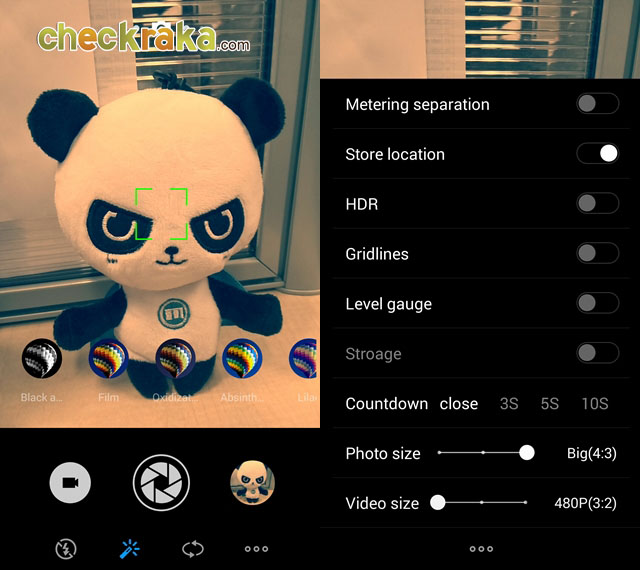 ในเรื่องของการถ่ายภาพนั้น เครื่องมาพร้อมกล้องหน้าความละเอียด 5 ล้านพิกเซล ใช้เซ็นเซอร์รับภาพ OmniVision OV5670 มุมกว้าง 69 องศา รูรับแสง f/2.0 ซึ่งรองรับการถ่ายเซลฟี่หรือวีฟี่ได้เป็นอย่างดี ส่วนกล้องหลังนั้นมีความละเอียด 13 ล้านพิกเซล ใช้เซ็นเซอร์รับภาพ Samsung CMOS ขนาด 1/3.06 นิ้ว รูรับแสง f/2.2 ซึ่งจากการทดสอบก็พบว่ากล้องทำงานได้น่าประทับใจในสภาวะแสงปกติ ภาพที่ได้มีความสวยงาม ดูเป็นธรรมชาติ แต่ถ้าเป็นภาพที่ถ่ายยามที่มีแสงน้อย อาจจะมี noise แสดงให้เห็นอยู่บ้าง