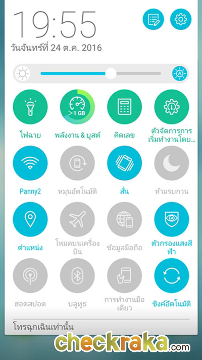เมื่อเราสไลด์นิ้วจากด้านบนลงด้านล่างจะพบกับส่วนแสดงการแจ้งเตือน (Notification Tab) และทางลัดในการ เปิด-ปิด ฟังก์ชันต่างๆ