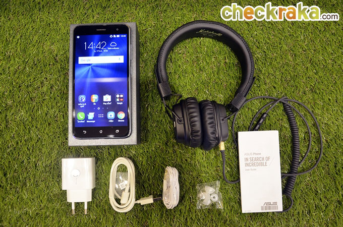 อุปกรณ์ในกล่องถูกแบ่งเป็น 2 กล่อง ประกอบด้วย กล่องหูฟัง Marshall Major II และกล่อง Asus ZenFone 3 โดยในกล่องนั้นจะมีอุปกรณ์ทั้งหมดดังนี้