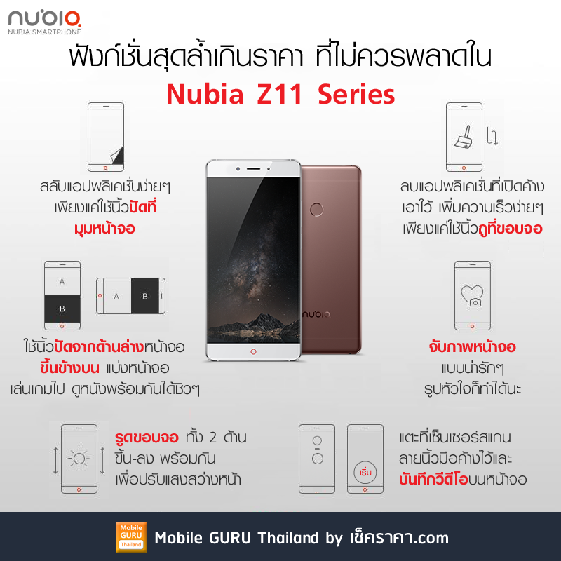 Nubia Z11 Max เป็นสมาร์ทโฟนรุ่นใหม่จากแบรนด์ Nubia ซึ่งเพิ่งจะเข้ามาทำตลาดในประเทศไทยอย่างเป็นทางการไปหมาดๆ เองครับ เป็นแบรนด์ลูกของ ZTE ที่ออกมาทำตลาดเอง โดยเปิดตัวทีเดียวถึง 4 รุ่น มีจุดขายตรงสเปคที่เกินราคา แถมยังมี Design ที่ดูพรีเมี่ยม และฟังก์ชั่นที่ดูล้ำสมัยมีจุดเด่นเฉพาะตัว รวมทั้งมีแผนการตลาดที่จะเน้นทำตลาดด้านออนไลน์เป็นหลัก สั่งซื้อได้ในเว็บไซต์ store.nubia และผ่านร้านค้าออนไลน์อย่าง Lazada, Cmart, 24shopping หรือซื้อแบบออฟไลน์ได้ที่ Big C รวมทั้งกำลังจะจับมือกับ 7-Eleven เพื่อเพิ่มช่องทางจำหน่ายอีกด้วย