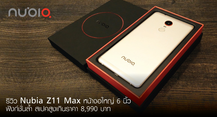 สำหรับ Nubia Z11 Max ที่เราจะนำมารีวิวในวันนี้ ต้องบอกว่าเป็นสมาร์ทโฟนที่ดูคุ้มค่ามากจนน่าตกใจ เพราะมีความโดดเด่นสูง เปิดตัวมาที่ 8,990 บาทเท่านั้น รุ่นนี้สเปคถือว่าจัดเต็มเลยทีเดียว ไม่ว่าจะเป็นหน้าจอ Super AMOLED ขนาดใหญ่ 6 นิ้ว ความละเอียดระดับ Full HD แถมชิปเซ็ต Snapdragon 652, RAM 4GB, หน่วยความจำภายใน 64GB สามารถเพิ่ม Micro SD Card, เซ็นเซอร์ Fingerprint, กล้องความละเอียด 16MP และกล้องหน้า 8MP, แบตเตอรี่ความจุสูง 4,000 mAh รองรับ Quick Charge 3.0 เล่นเอาสะเทือนตลาดราคา 8,990 บาทเลยทีเดียว