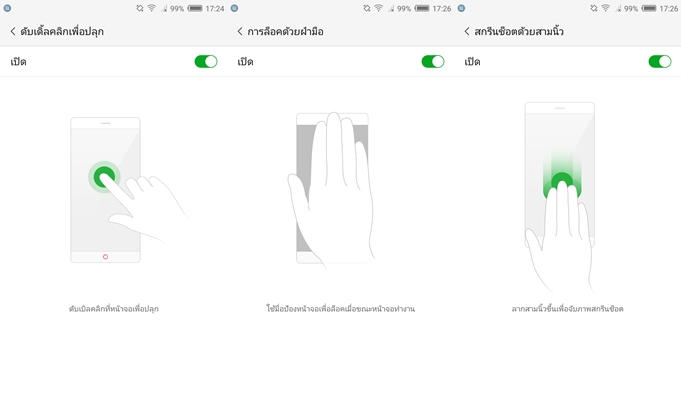 - ใช้นิ้ว 3 นิ้ว เลื่อนขึ้นด้านบนเพื่อจับภาพหน้าจอ