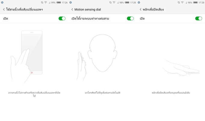 - เมื่อมีสายเรียกเข้า เครื่องเล่นเพลง หรือเสียงปลุก ให้คว่ำสมาร์ทโฟนลง เสียงจะหยุดอัตโนมัติ