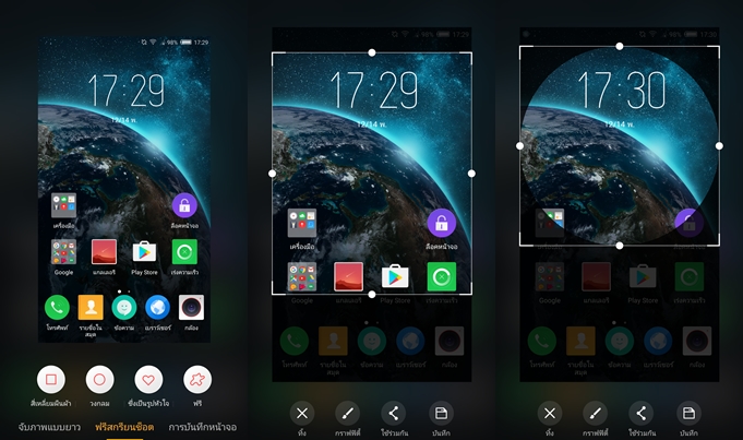- จับภาพหน้าจอสี่เหลี่ยมผืนผ้า, ทรงกลม, รูปหัวใจ, จับภาพหน้าจอเป็นรูปทรงอิสระ