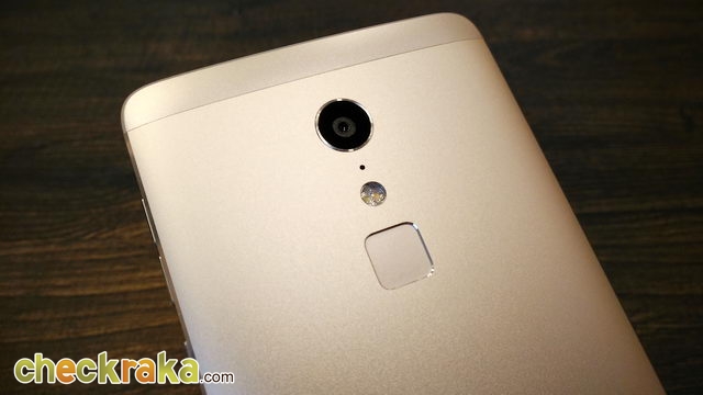 ด้านหลังเป็นวัสดุโลหะทรงโค้ง ด้านบนและด้านล่างจะเป็นพลาสติก กล้องความละเอียด 16MP พร้อมไมค์ตัดเสียงรบกวน และไฟแฟลชคู่ LED แบบทูโทน ถัดมาจะเป็นเซ็นเซอร์สแกนลายนิ้วมือ ซึ่งรองรับได้สูงสุด 5 ลายนิ้วมือ ความแม่นยำทำได้ดีครับ