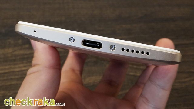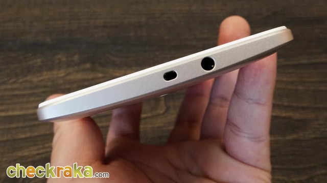 ขอบตัวเครื่องมีการเจียรขอบสวยงาม ด้านบนมี Infrared port และพอร์ทหูฟังขนาด 3.5 มม. ส่วนด้านล่างมีไมโครโฟน ลำโพงตัวเครื่อง (เสียงดังใช้ได้ครับ ความเพราะโอเคอยู่) และพอร์ท USB Type-C (มีน็อตยึดด้านล่าง 2 ตัวด้วย)