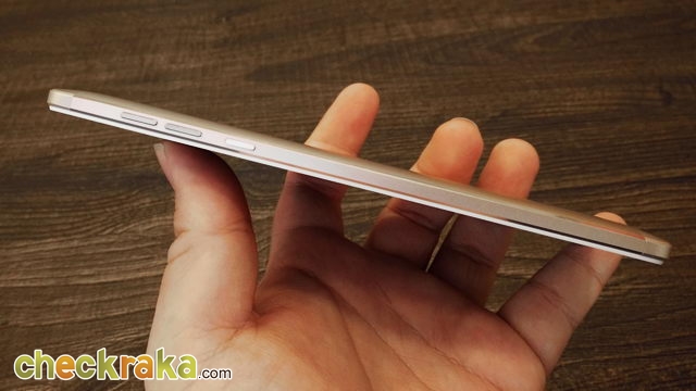 ด้านซ้ายจะเป็นช่องใส่ซิม (แบบไฮบริด) ส่วนด้านขวามีปุ่มปรับระดับเสียง และปุ่ม Power (มีการทำลวดลายไว้ทำให้กดได้แม่นยำมากขึ้น)
