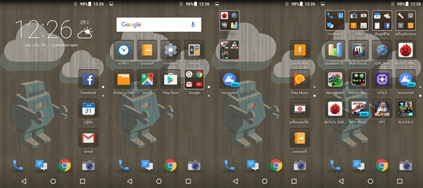 Sharp Z2 ทำงานบน Android 6.0.1 Marshmallow การใช้งานลื่นไหล รวดเร็วดีมาก และมีการปรับแต่ง UI มาพอสมควรเลยครับ โดยเฉพาะในส่วนของหน้า Home ซึ่งจะแตกต่างจากปกติ โดยเราสามารถลากหน้าโฮมในแนวขึ้น-ลงได้ จากปกติที่จะเลื่อนซ้าย-ขวา เท่านั้น ทำให้เราสามารถลากหน้าโฮมได้แบบรูปทรงสี่เหลี่ยมเลยครับ เวลาเพิ่มหน้าโฮมจะเป็นการเพิ่มในแนวตั้ง ซึ่งดูแปลกใหม่ดีนะ