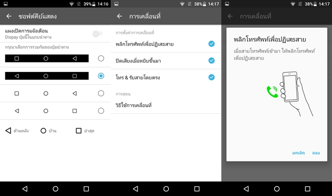 ปุ่ม SoftKey ด้านล่างหน้าจอสามารถสลับปรับแต่งได้ 4 รูปแบบ และมีโหมด Gesture พื้นฐานมาให้ใช้ สำหรับรุ่นนี้ใส่ลูกเล่นมาให้น้อยครับ แต่สำหรับคนที่ไม่ค่อยได้ใช้ลูกเล่นอะไรมากบนสมาร์ทโฟนก็ไม่มีปัญหา หรือถ้าอยากจะใช้ก็ดาวน์โหลดแอปพลิเคชั่นใน Play Store มาใช้ได้นะครับ เพราะรุ่นนี้ใส่เซ็นเซอร์มาให้ครบเลย รองรับแน่นอน