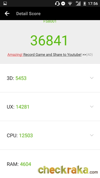 ผลการทดสอบประสิทธิภาพความเร็วด้วย Antutu Benchmark ได้ 36841 คะแนน