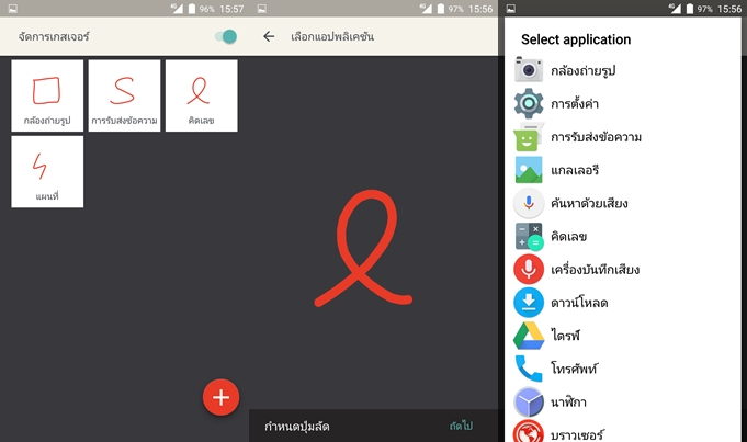 มีลูกเล่น Gestures มาให้ โดยเราสามารถวาดสัญลักษณ์ต่างๆ ที่เรากำหนดขึ้นมาเองได้ เพื่อเรียกใช้งานแอปพลิเคชันต่างๆได้อย่างรวดเร็ว เราสามารถเขียนไปบนหน้า Home ได้เลยครับ ความแม่นยำทำได้ดีมาก