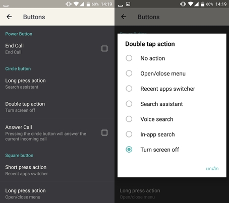 สามารถตั้งค่าปุ่มสัมผัสทั้ง 3 ปุ่มได้อย่างอิสระ เช่น แตะปุ่ม Home สองครั้งเป็นการปิดหน้าจอเป็นต้น