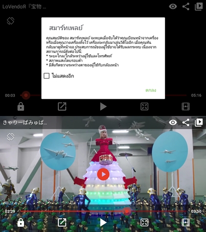เครื่องเล่นวีดีโอสามารถจับเซ็นเซอร์ดวงตาเราได้นะครับ โดยจะหยุดเมื่อเราหันไปมองอย่างอื่น และจะกลับมาเล่นเมื่อเรามองไปที่หน้าจอ ความแม่นยำทำได้ดีมาก แถมยังสามารถเล่นวีดีโอสองไฟล์พร้อมกันได้ โดยเลือกเล่นทีละไฟล์ หรือพร้อมๆ กันก็ได้ รวมทั้งเลือกเปิด-ปิดเสียงแต่ละไฟล์ได้อีกด้วย แต่เท่าที่ทดสอบมันจะหน่วงๆ ไม่ลื่นไหล แต่ถ้าดูไฟล์เดียวปกติก็ลื่นไหลดีไม่มีปัญหา รองรับความละเอียด Full HD 1080P ได้สบายๆ