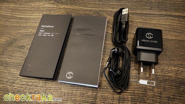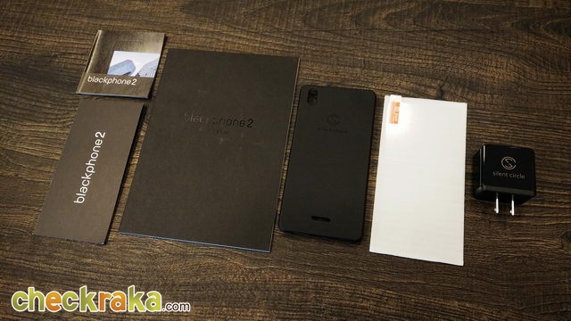 - ฮาร์ดเคสสีดำด้าน มีโลโก้ Silent Circle และชื่อ Blackphone