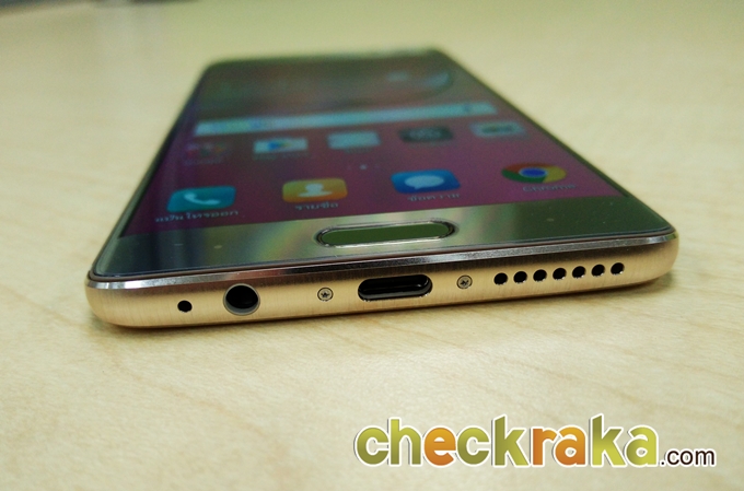 ด้านล่างตัวเครื่อง มีพอร์ท USB Type-C พอร์ทหูฟัง 3.5 mm. ด้วย ช่องลำโพงเสียงสเตอริโอ และไมค์สนทนา