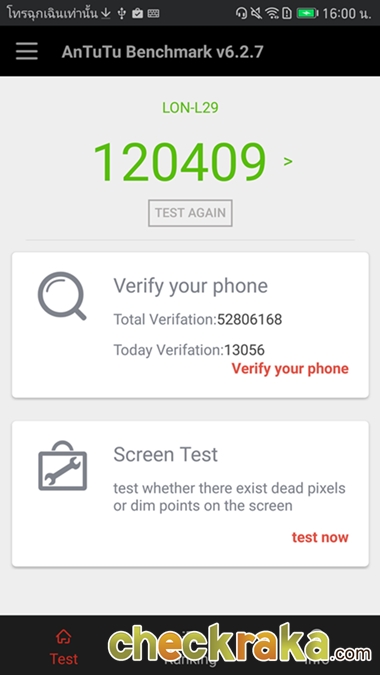 ผลการทดสอบประสิทธิภาพความเร็วด้วย Antutu Benchmark ได้ 120409 คะแนน