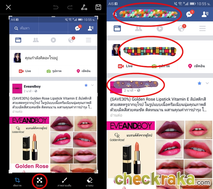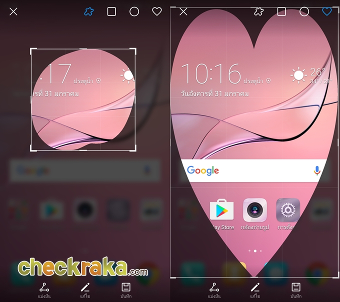 ส่วนในฟีเจอร์ Screen Shot นั้นเมื่อแคปแล้วสามารถแก้ไขได้ทันที สามารถเลือกลายโมเสคได้ตามใจอีกด้วย