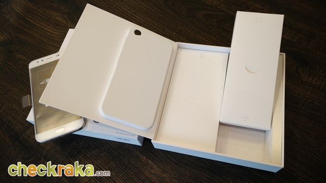กล่องของ Vivo V5 Plus ดูหรูหราสวยทีเดียว ชูจุดขาย 20MP Dual Front Camera และในกล่องจะจัดชุดมาครบถ้วนเลยครับ ไม่จำเป็นต้องไปหาซื้อเพิ่ม นอกจากนี้ในชุดจำหน่าย ยังแถม V5 Plus Set Box มาให้อีกด้วย ภายในกล่องจะมีอุปกรณ์ดังต่อไปนี้