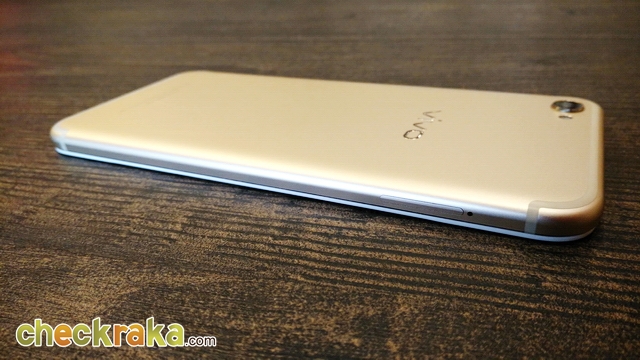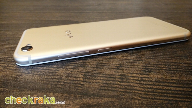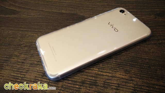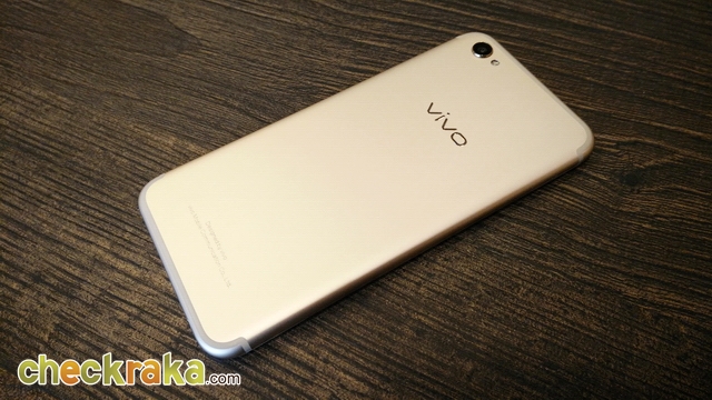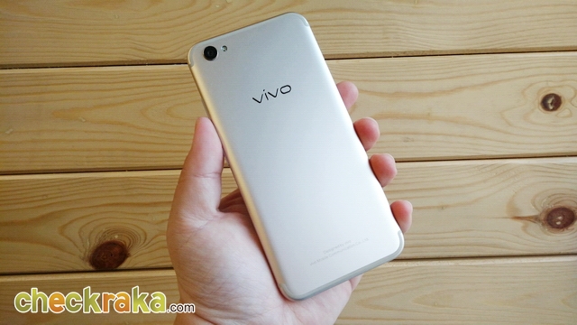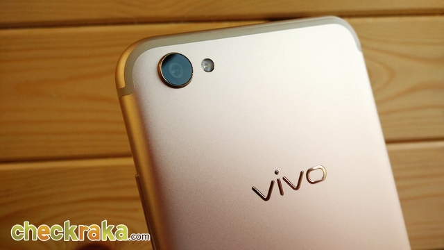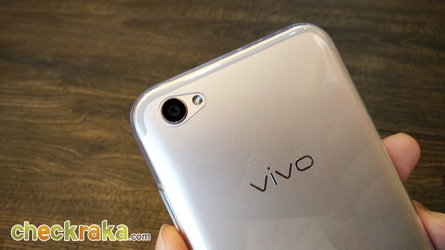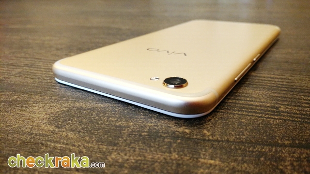 ด้านหลังเรียบหรูครับ มีการวางเสาอากาศแบบตัว U ซึ่งทาง Vivo บอกว่าทำให้ความสามารถรับสัญญาณทำได้ดีขึ้นกว่าเดิม มาพร้อมชุดกล้องความละเอียด 16MP และไฟแฟลช LED ชุดกล้องค่อนข้างนูนขึ้นมาพอสมควร อาจจะต้องระวังกันหน่อยนะครับ ถัดมาเป็นโลโก้ Vivo