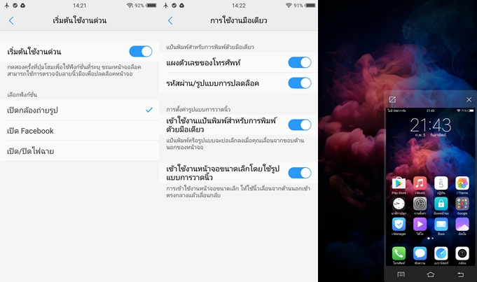 ฟังก์ชั่นการใช้งานมือเดียว ซึ่งสามารถเรียกใช้งานได้โดยลากนิ้วจากกลางหน้าจอ เข้ามาที่ขอบจออย่างรวดเร็ว แถมหน้าจอที่เราย่อลงมายังสามารถขยับตำแหน่งไปมา รวมทั้งปรับขนาดได้ตามใจชอบ ยังมีมาให้เหมือนเดิมนะครับ แต่ผมว่ามันทำงานได้ลื่นนิ้วมากขึ้นครับ ย่อหน้าจอได้ดูเป็นธรรมชาติมากกว่าเดิม