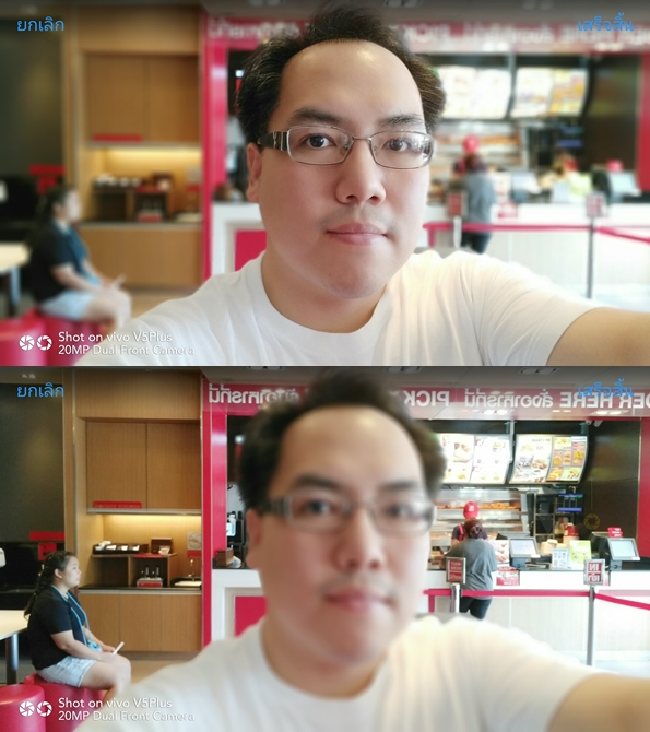 ตัวอย่างภาพที่ปิด และเปิด ไฟแฟลช Selfie Softlight Flash จะเห็นว่าแสงดูนุ่มมากๆ
