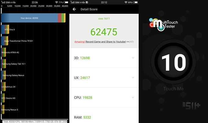 - ทดสอบด้วยแอปพลิเคชั่น AnTuTu Benchmark ทำไปได้ 62,475 คะแนน