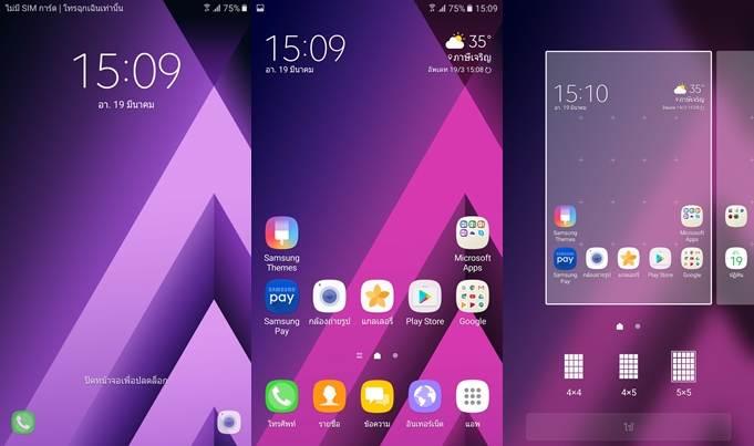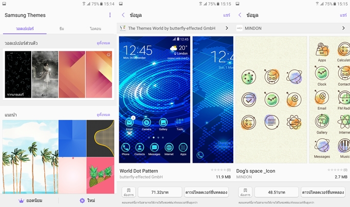 ในส่วนของธีมมีให้ดาวน์โหลดมากมาย ทั้งฟรีและเสียเงิน ต้องบอกว่าทำได้ดีที่สุดในตอนนี้เลยครับ มีให้เลือกมากมายและสดใหม่ ทั้งภาพพื้นหลัง, ธีม และไอค่อน ในจุดนี้ต้องขอชม Samsung จริงๆ