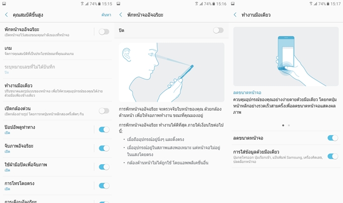 ในเครื่องจะมีฟังก์ชั่นพิเศษมากมาย ทั้งการพักหน้าจออัจฉริยะ นั่นคือหน้าจอจะไม่ดับถ้าเรายังมองไปที่หน้าจออยู่, ฟังก์ชั่นการใช้งานมือเดียว โดยเราสามารถกดไปที่ปุ่ม Home เร็วๆ 3 ครั้งเพื่อย่อขนาดหน้าจอลงมาได้ และสามารถตั้งค่าให้คีย์บอร์ดและแป้นตัวเลขมีขนาดเล็กลง เพื่อให้ใช้งานมือเดียวถนัดยิ่งขึ้น และความสามารอื่นๆ มากมายที่มีประโยชน์