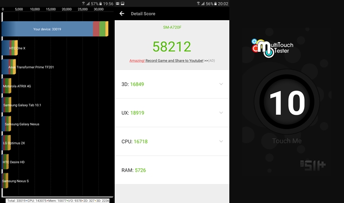 Samsung Galaxy A7 (2017) มาพร้อมชิปเซ็ต Exynos 7880, CPU Octa-core 1.9 GHz Cortex-A53, GPU Mali-T830MP3, RAM 3GB, หน่วยความจำ 32GB, สามารถเพิ่ม Micro SD Card ได้ คะแนนทดสอบผลออกมาตามนี้ครับ