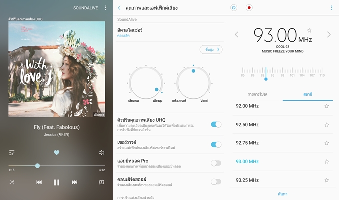 Samsung Galaxy A7 (2017) เสียงดีมาก ทั้งผ่านลำโพง และหูฟัง มาพร้อมฟังก์ชั่นปรับแต่งเสียง SoundAlive และปรับแต่งเสียงเฉพาะตัว Adapt Sound ได้ด้วย ซึ่งเป็นลูกเล่นที่มามานานแล้ว แต่แจ๋วมากๆ ของ Samsung ใครยังไม่เคยลองห้ามพลาดเลยครับ และรุ่นนี้มีวิทยุมาให้ด้วยนะ สามารถบันทึกเสียงเอาไว้ฟังภายหลังได้ด้วยครับ