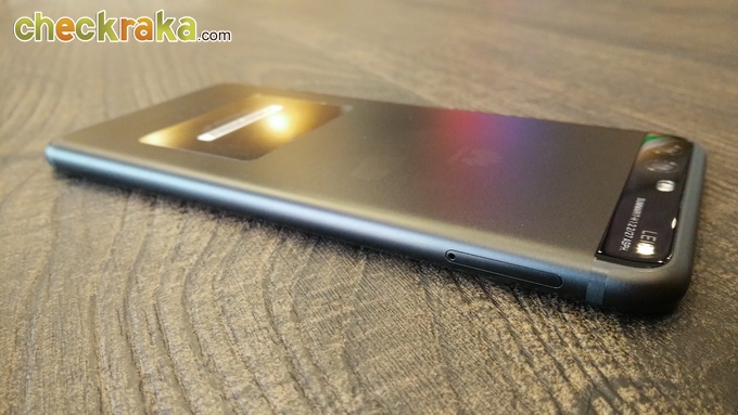 ด้านซ้ายมีช่องใส่ซิมการ์ด และด้านขวามีปุ่มปรับระดับเสียง และปุ่ม Power มีลวดลายเพื่อช่วยให้กดได้อย่างมั่นใจแม้ว่าจะไม่ได้มอง และมีตัดขอบสีแดง ดูเท่ทีเดียวครับเมื่ออยู่บนเครื่องสีดำแบบนี้