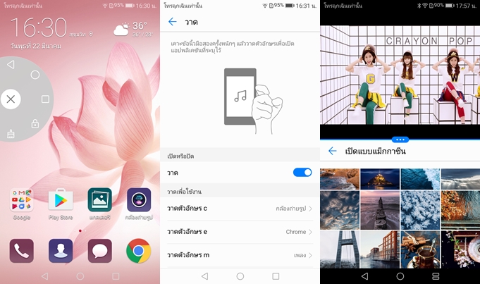 ฟังก์ชั่นปุ่มแผงไอค่อนลัด จะเป็นคำสั่งลัดอยู่ตรงขอบจอ สามารถย้ายที่ได้อิสระ โดยจะมีคำสั่ง Back, Home, Recent App, Lock Screen, Clear App และ Knuckle Gestures ซึ่งมีความสามารถหลายหลายเช่น ใช้ข้อนิ้วเขียนบนหน้าจอ ในการจับภาพหน้าจอ ซึ่งสามารถจับภาพหน้าจอได้หลายรูปแบบ, ใช้ข้อนิ้ววาดตัวอักษรเพิ่อเปิดใช้งานฟังก์ชั่นต่างๆ, ใช้ข้อนิ้วขีดตรงกลางหน้าจอแนวนอน เพื่อเปิดใช้งาน Multi Window ซึ่งจะช่วยให้เราทำงาน 2 อย่างไปพร้อมๆ กันได้ ซึ่งผมไม่ค่อยชอบเท่าไหร่ครับ ฟังก์ชั่นนั้นดีมาก แต่เราต้องใช้นิ้วเคาะหน้าจอค่อนข้างแรงนิดนึงเพื่อใช้งาน คนที่ถนอมเครื่องไม่น่าจะชอบใจแน่ๆ นอกจากนี้ยังมาพร้อม Motion Control และฟังก์ชั่นใช้งานมือเดียว