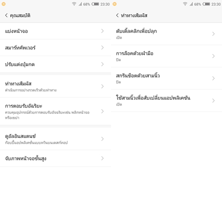 - ใช้นิ้วเลื่อนขอบหน้าจอทั้ง 2 ด้าน จะเป็นการปรับเพิ่ม-ลดความสว่างหน้าจอ
