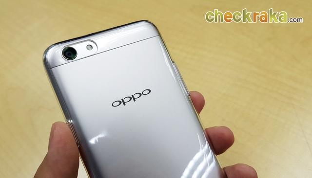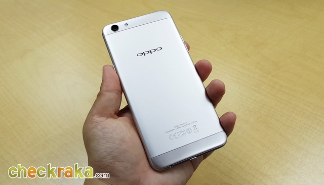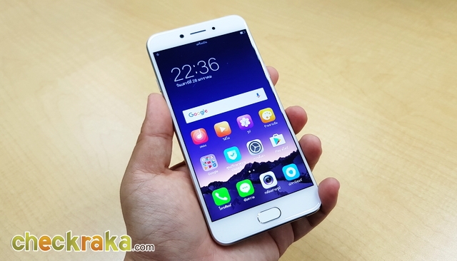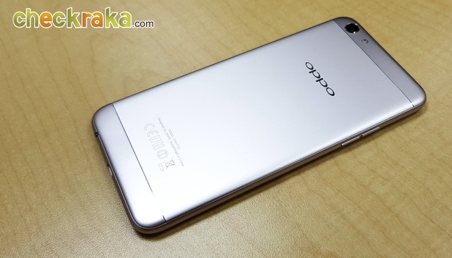 OPPO A77 มาพร้อมดีไซน์ที่สวยงามมากครับ แต่มีหลายคนบ่นว่าดีไซน์ดูซ้ำกับรุ่นก่อนๆ แต่รุ่นนี้มีจุดน่าที่สนใจก็ตรงฝาหลังเป็นวัสดุโลหะ (ส่วนอื่นๆ เป็นพลาสติก) สำหรับเครื่องที่ได้นำมารีวิวในครั้งนี้จะเป็นสีทอง โทนสีจะเป็นสีทองอ่อนๆ รุ่นนี้มีความบางเพียง 7.3 มม. และมีน้ำหนักเบาเพียง 153 กรัม ถือว่าบางและเบาใช้ได้ทีเดียว สำหรับสมาร์ทโฟนหน้าจอ 5.5 นิ้วแบบนี้ รุ่นนี้ขอบเครื่องบางเฉียบดูสวยมากครับ หน้าจอจะเป็น IPS LCD ความละเอียดอยู่ที่ Full HD 1080P สีสันสวยงามสบายตา คมชัดและสู้แสงได้ดี กระจกหน้าจอโค้ง 2.5D พร้อมติดฟิล์มกันรอยมาให้ตั้งแต่ในกล่อง