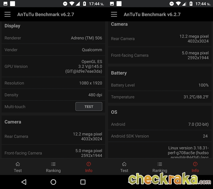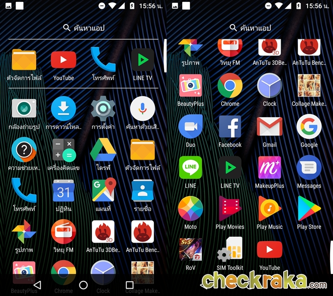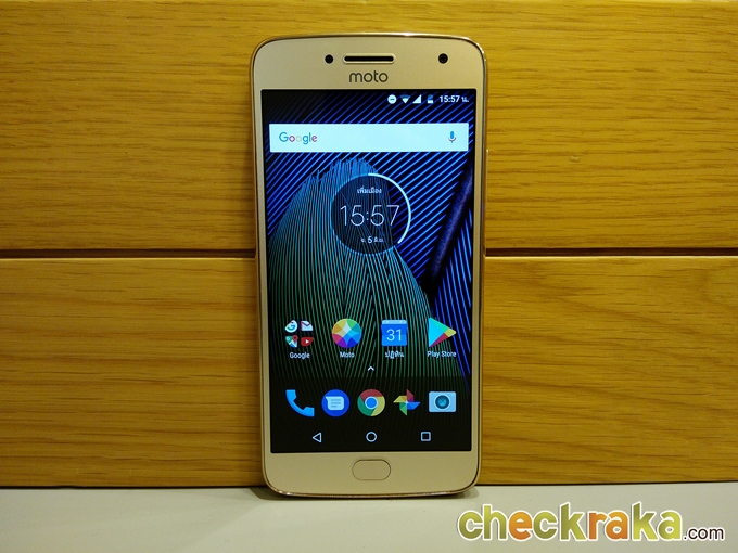 Moto G5 Plus มีขนาด 5.2 นิ้ว แบบ Full HD ทำงานอยู่บนระบบปฏิบัติการ Android 7.0 Nougat ซึ่งหน้า Launcher จะเห็นได้ว่าไม่มี App drawer โดยมีการเปลี่ยนให้เป็นการสไลด์จากด้านล่างหน้าจอแทนจึงจะเจอเมนูต่างๆ ที่เราโหลดมาไว้ในเครื่อง แต่ส่วนของแถบแจ้งเตือนด้านบนและสวิชเปิดปิดฟังก์ชั่นต่างๆ ยังคงเหมือนเดิม