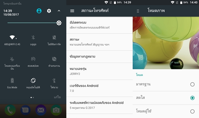 Wiko Jerry 2 ทำงานบน Android 7.0 Nougat ครอบทับด้วย Wiko UI ที่แม้จะดูเรียบๆ แต่ลูกเล่นเยอะใช้ได้เลยครับ แม้แต่กับรุ่นเล็กๆ แบบนี้ก็ยังใส่ฟังก์ชั่นอำนวยความสะดวกมาให้ครบครัน ฟังก์ชั่น MiraVision สามารถปรับโทนสีของหน้าจอได้ 3 รูปแบบ และสามารถปรับแต่งด้วยตัวเองได้ด้วย (ครอบคลุมไปถึงในส่วนของการแสดงคลิปวีดีโอ) ความรวดเร็วและความลื่นไหลไม่ค่อยดีนัก และสัมผัสไม่ค่อยติดนิ้ว เพราะสเปคไม่สูง (ตามราคานะครับ)