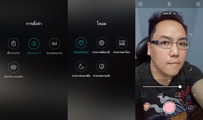 ตัวอย่างกล้องหน้า เปิดโหมด Face Beauty