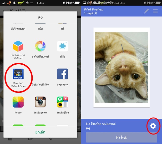 การใช้งานโปรแกรม Brother i Print & Scan อันดับแรกต้องต่อ Printer เข้ากับ wifi ก่อน โดยเข้า Menu > Network > setup wizard > เลือก ชื่อ Wifi ที่บ้านแล้วใส่ password ลงไปแล้วโหลดแอปฯ Brother i Print & Scan ในสมาร์ทโฟนค่ะ เสร็จแล้วหากเราต้องการปริ้นรูปภาพให้เข้าไปที่อัลบั้มรูปภาพในสมาร์ทโฟน เลือกรูปภาพที่ต้องการจะปริ้น กดแชร์แล้วเลือกที่ไอคอน Brother i Print & Scan จากนั้นรอสักครู่
