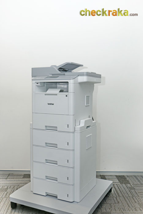 เมื่อเครื่องพิมพ์สำนักงาน Brother MFC-L6900DW ใส่อุปกรณ์เสริม Tower tray TT-400 เข้าไปก็จะมีน้ำหนักมากขึ้นหลายกิโลกรัมเลยทีเดียว แต่ก็เคลื่อนย้ายไปมาสะดวก เพราะมีล้อทางด้านล่าง นอกจากนั้น การที่ต่อ Tower tray TT-400 เข้ากับตัวเครื่อง ยังช่วยในเรื่องของการพิมพ์อย่างมาก รองรับการใส่กระดาษพิมพ์ได้สูงสุด 2600 แผ่น (520 x 5 ชั้น) อีกทั้งยังกำหนดรูปแบบการพิมพ์ของแต่ละชั้นได้อีกด้วย